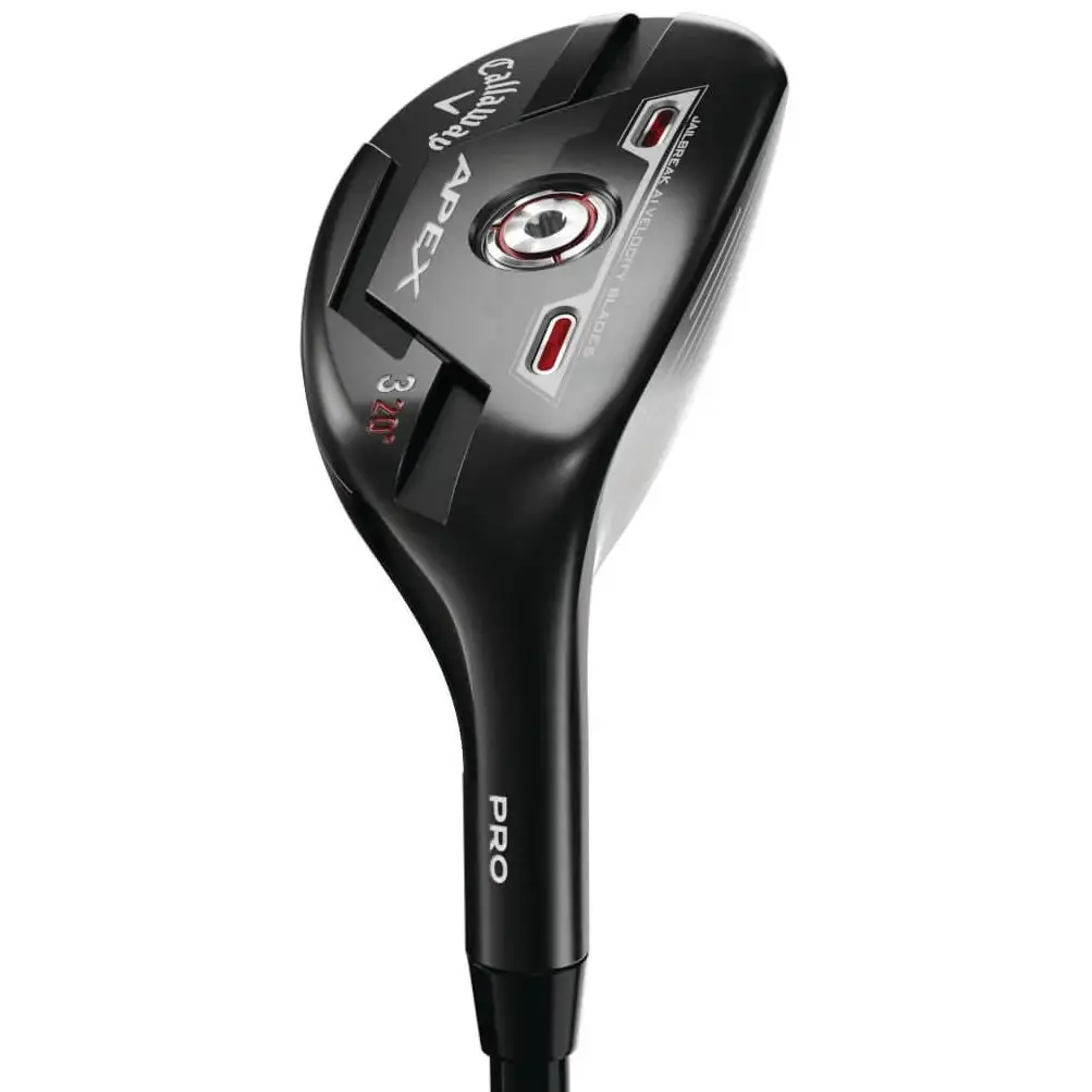 Perfect for players that want a high performance option at the tee comes the Callaway Apex Pro 21 Hybrid. The Apex Pro 21 features a compact shape, control and workability and has a Jailbreak A.I. Velocity blade that connects the sole of the club to the crown. These blades increase vertical stiffness which creates more ball speed low on the face with better spin consistency. The A.I. designed Flash Face SS21 maximizes ball speed on center and off-center shots and the Face Cup provides speed and spin consistency across the face of the club.